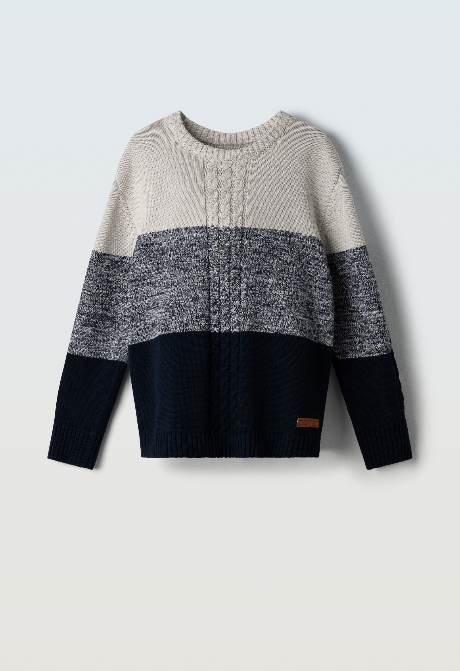 Ζεστό, στιλάτο και άνετο, αυτό το πλεκτό για αγόρια συνδυάζει τρεις αποχρώσεις του μπλε και του γκρι με έναν τρόπο… βρετανικό. Έτσι, να θυμίζει λίγο χειμωνιάτικο Λονδίνο, λίγο cozy απόγευμα στις Σέρρες.