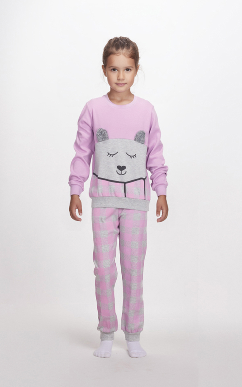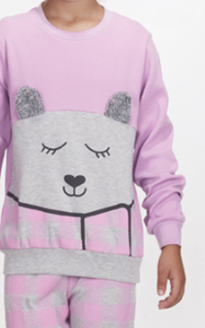 Μια παιδική πυζάμα που κλέβει καρδιές! Σετ με μπλούζα ροζ με γλυκύτατο σχέδιο αρκουδάκι με κλειστά ματάκια και τρισδιάστατα αυτιά, που προσκαλεί σε ονειρεμένες αγκαλιές. Το παντελόνι έρχεται σε ροζ-γκρι καρό μοτίβο, με λάστιχο στους αστραγάλους για τέλεια εφαρμογή και άνεση όλη τη νύχτα.