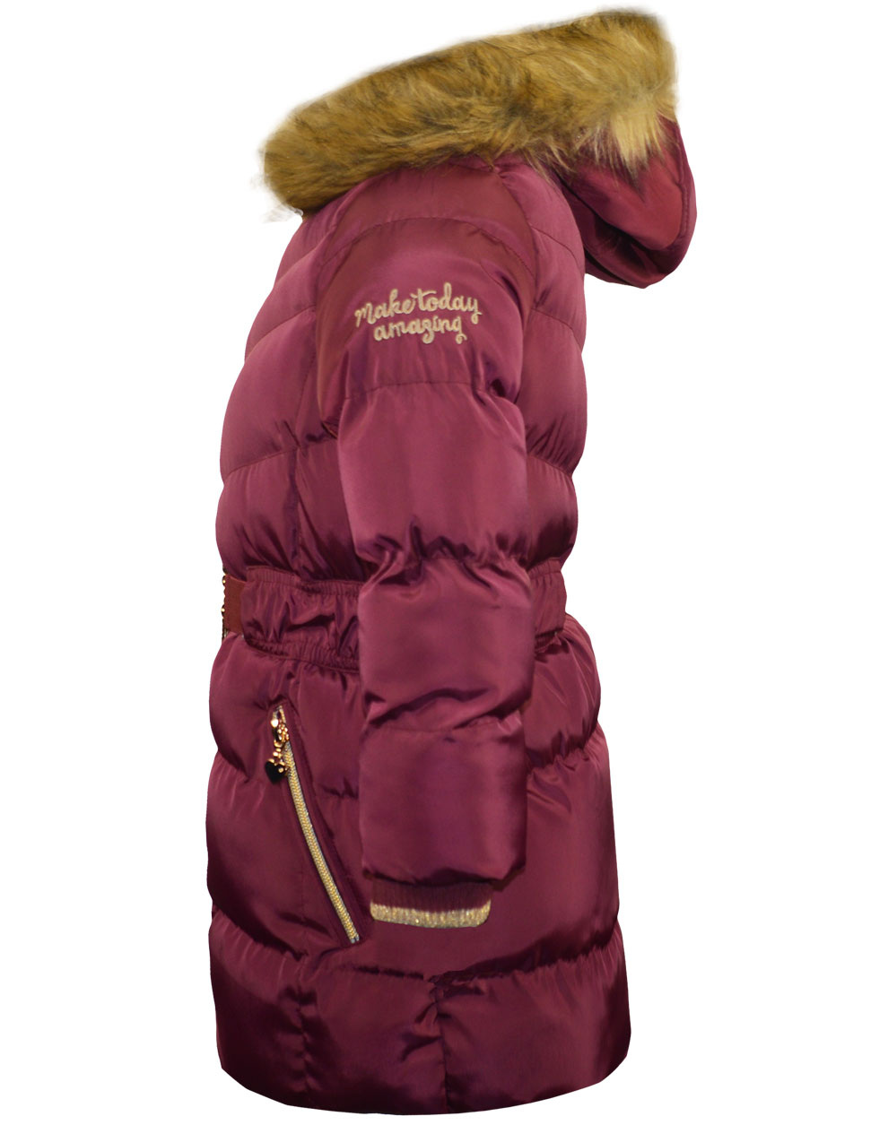 Παιδικό Μπουφάν Energiers ματζέντα με Ζώνη και Γούνα στην Κουκούλα