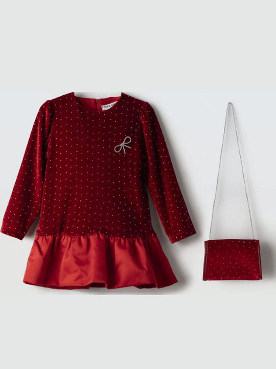 Παιδικό φόρεμα βελούδο μπορντώ με τσαντάκι ΕΒΙΤΑ 255299