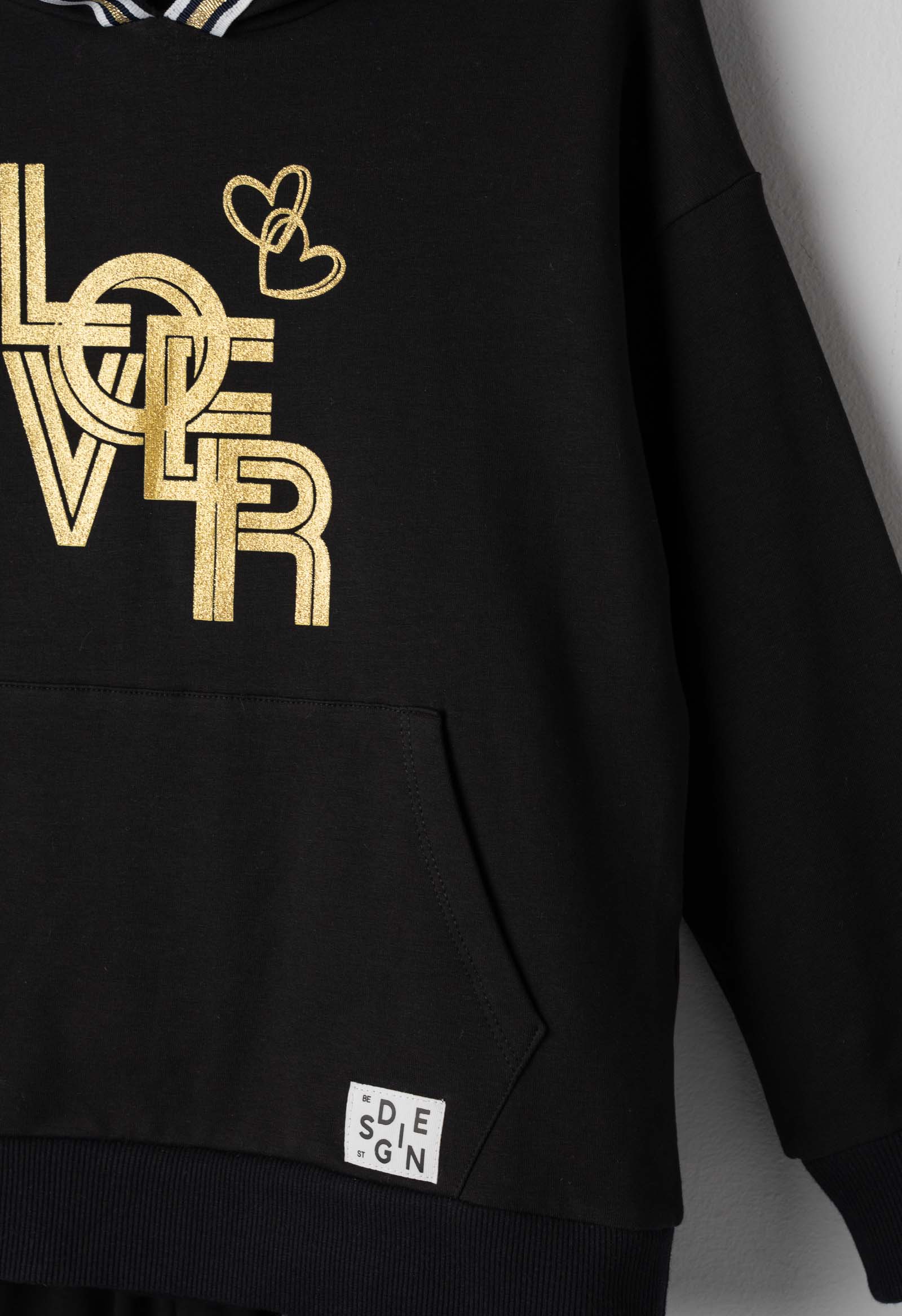 Τύπωμα “LOVER” σε χρυσή μεταλλική υφή — δεν είναι ένα απλό σχέδιο, είναι statement. Οι χρυσές αποχρώσεις «γράφουν» απίστευτα στο φως και δίνουν μια πολύ μοντέρνα πινελιά.