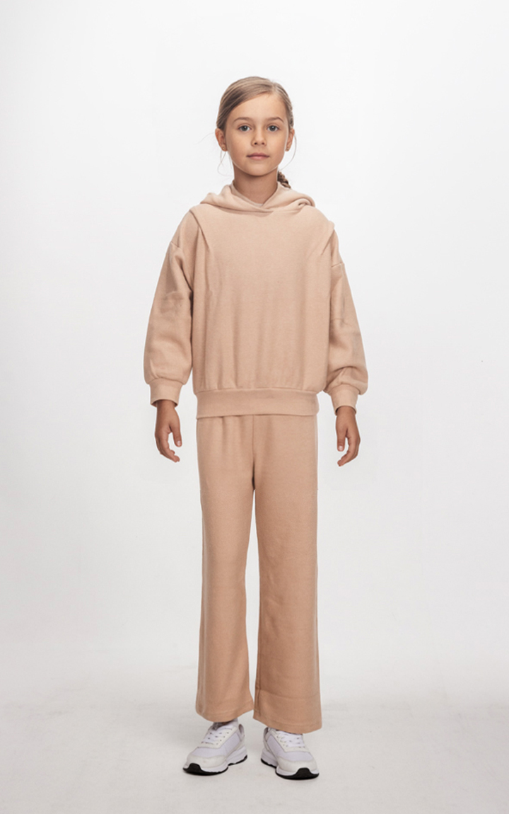 Το σετ περιλαμβάνει μπλούζα με κουκούλα σε χαλαρή γραμμή και μαλακό ύφασμα που αγκαλιάζει απαλά το σώμα. Το παντελόνι σε ίσια γραμμή συνδυάζεται ιδανικά, χαρίζοντας άνεση και στυλ.