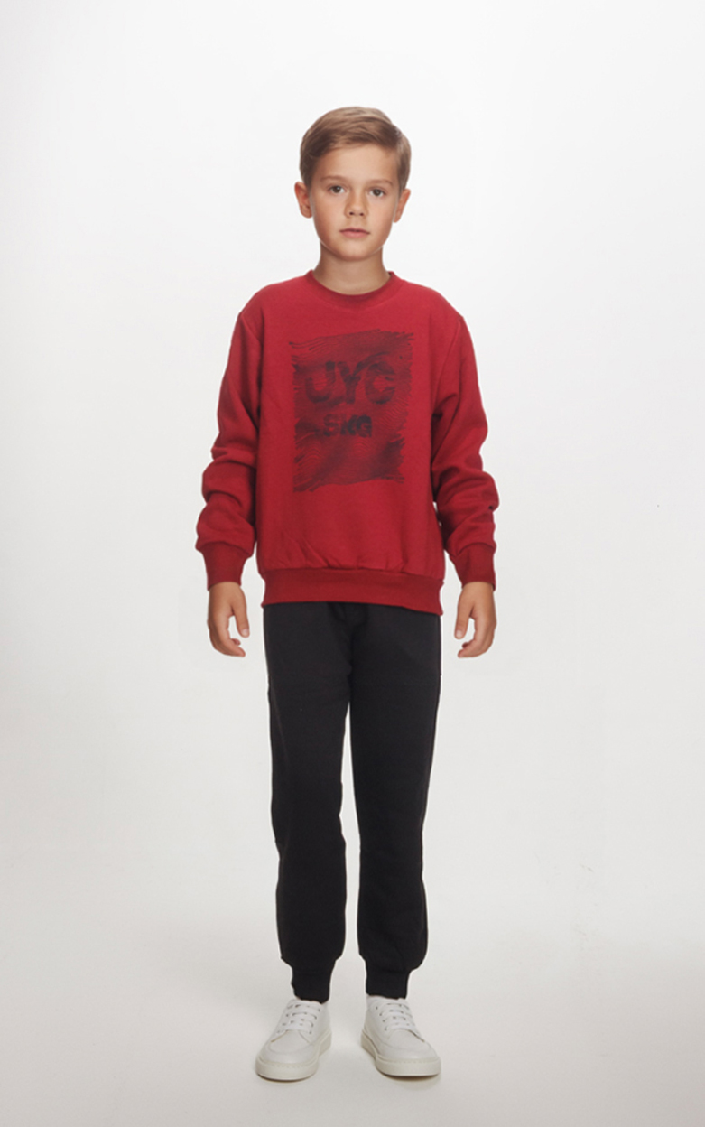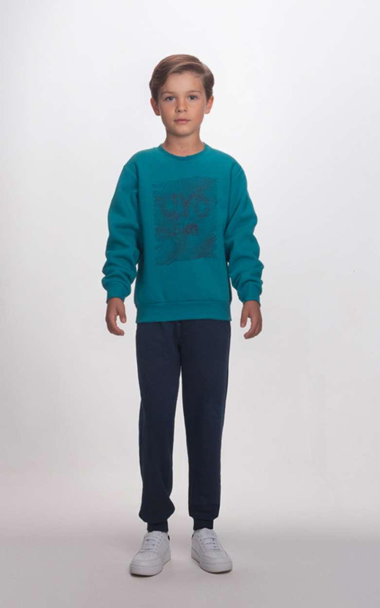 Παιδικό σετ φόρμα Joyce για αγόρι σε χρώμα πετρόλ και μπορντώ, χοντρό με χνούδι