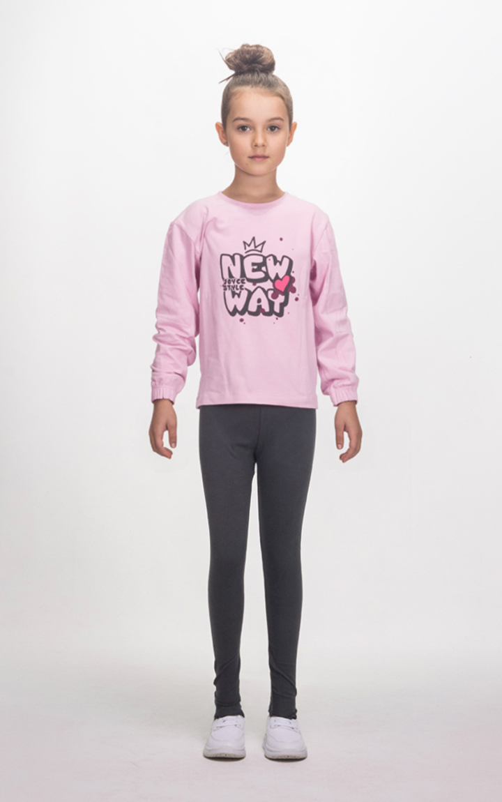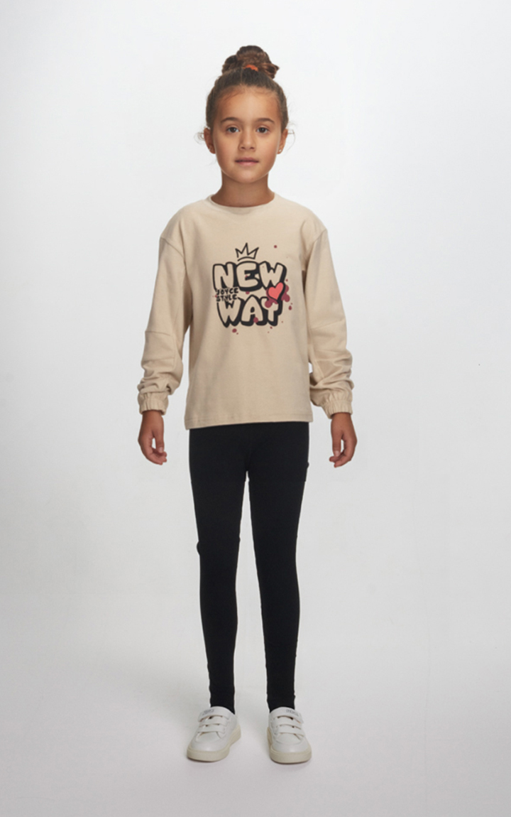 Παιδικό σετ κολάν Joyce με μπλούζα “New Way” – Μπεζ και λιλά