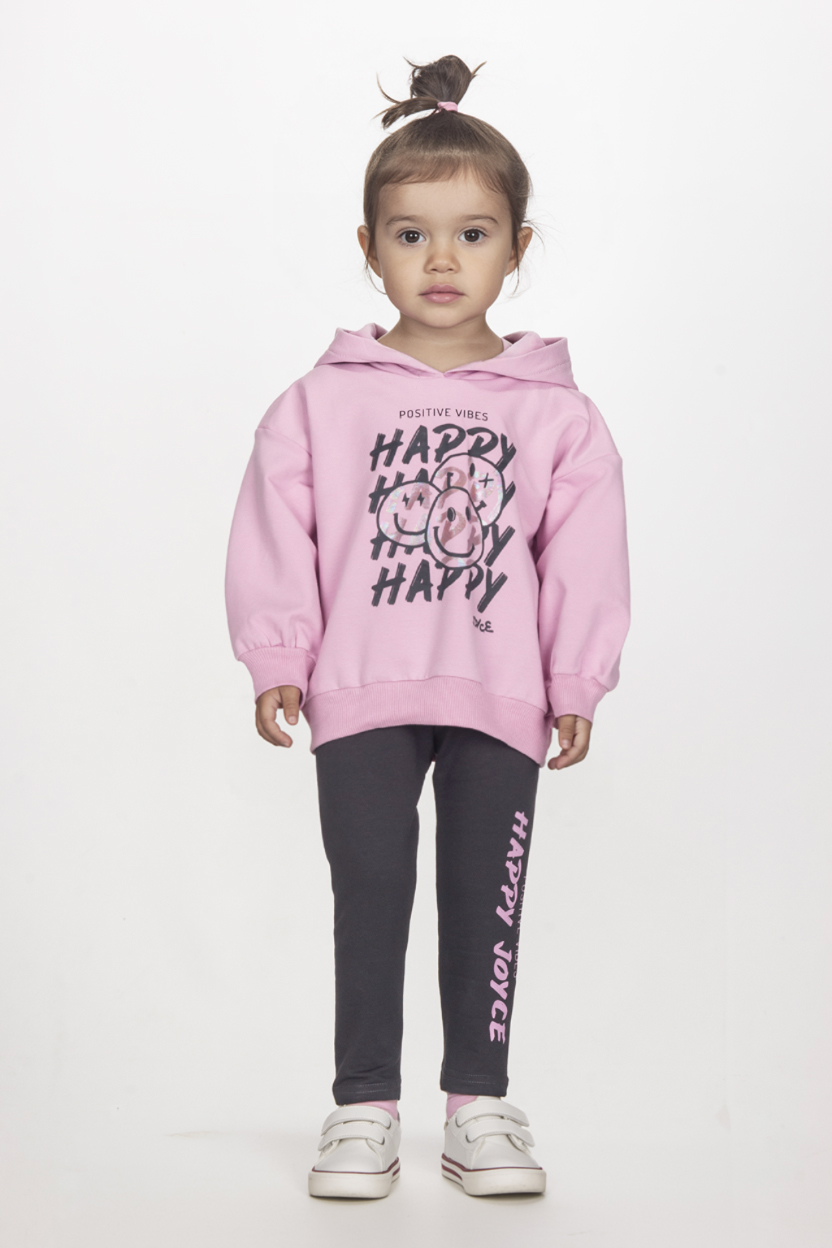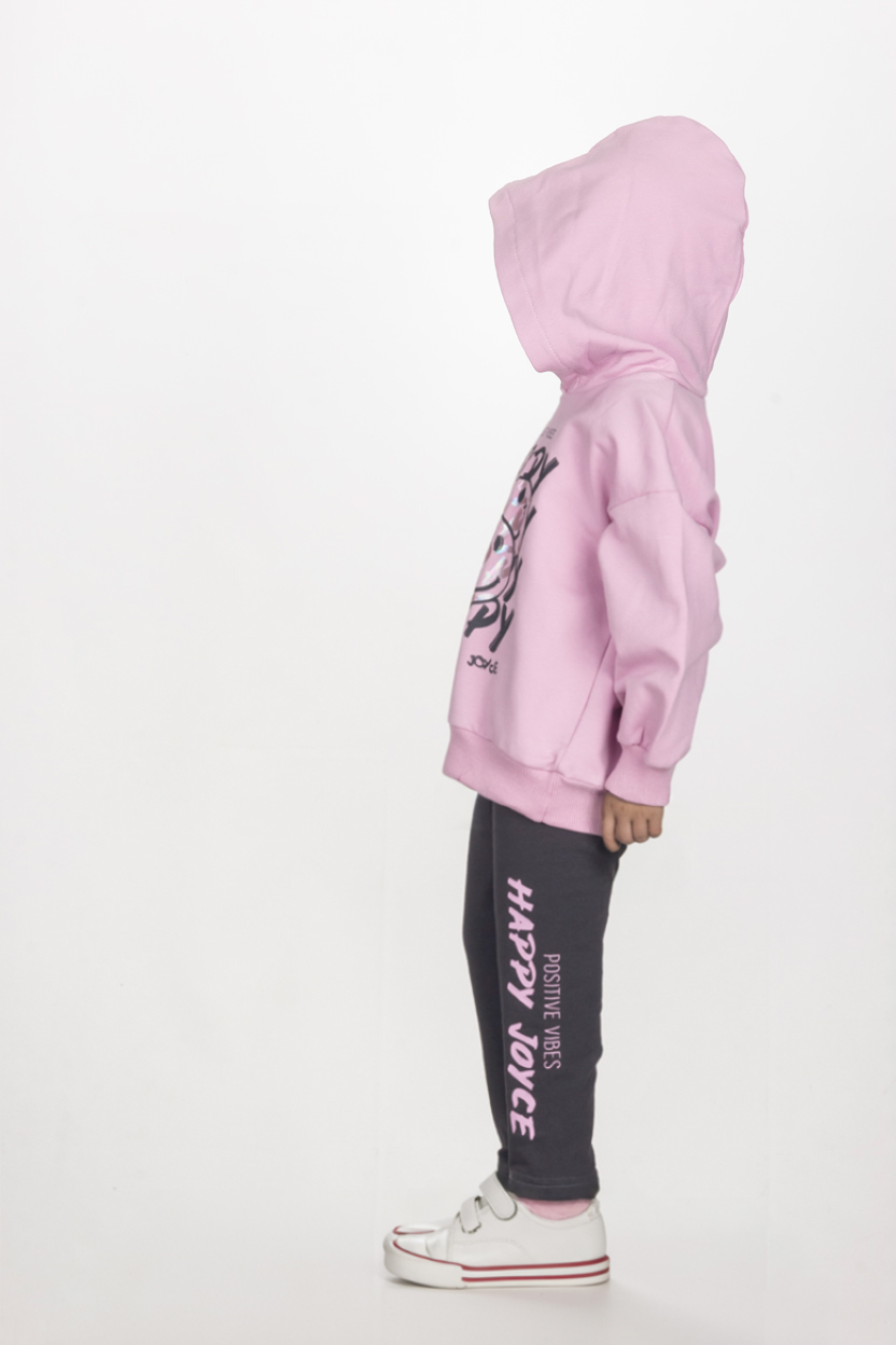 Παιδικό σετ κολάν ροζ με χνούδι Joyce “Positive Vibes” – Φούτερ & Κολάν