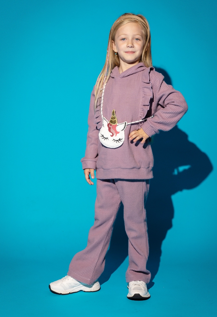 Παιδικό σετ παντελόνα Βελουτέ Ριπ με Κουκούλα & Unicorn Τσαντάκι