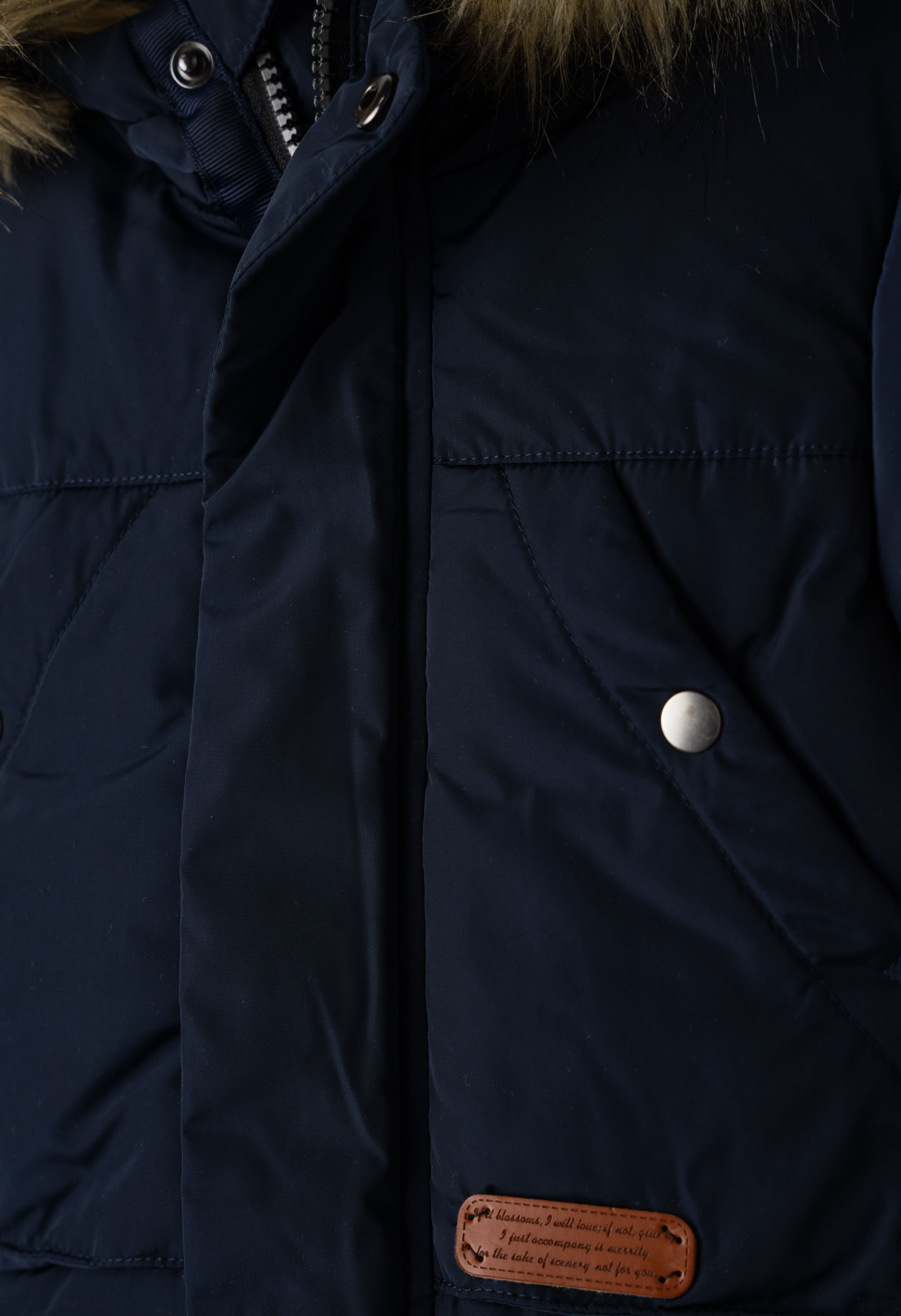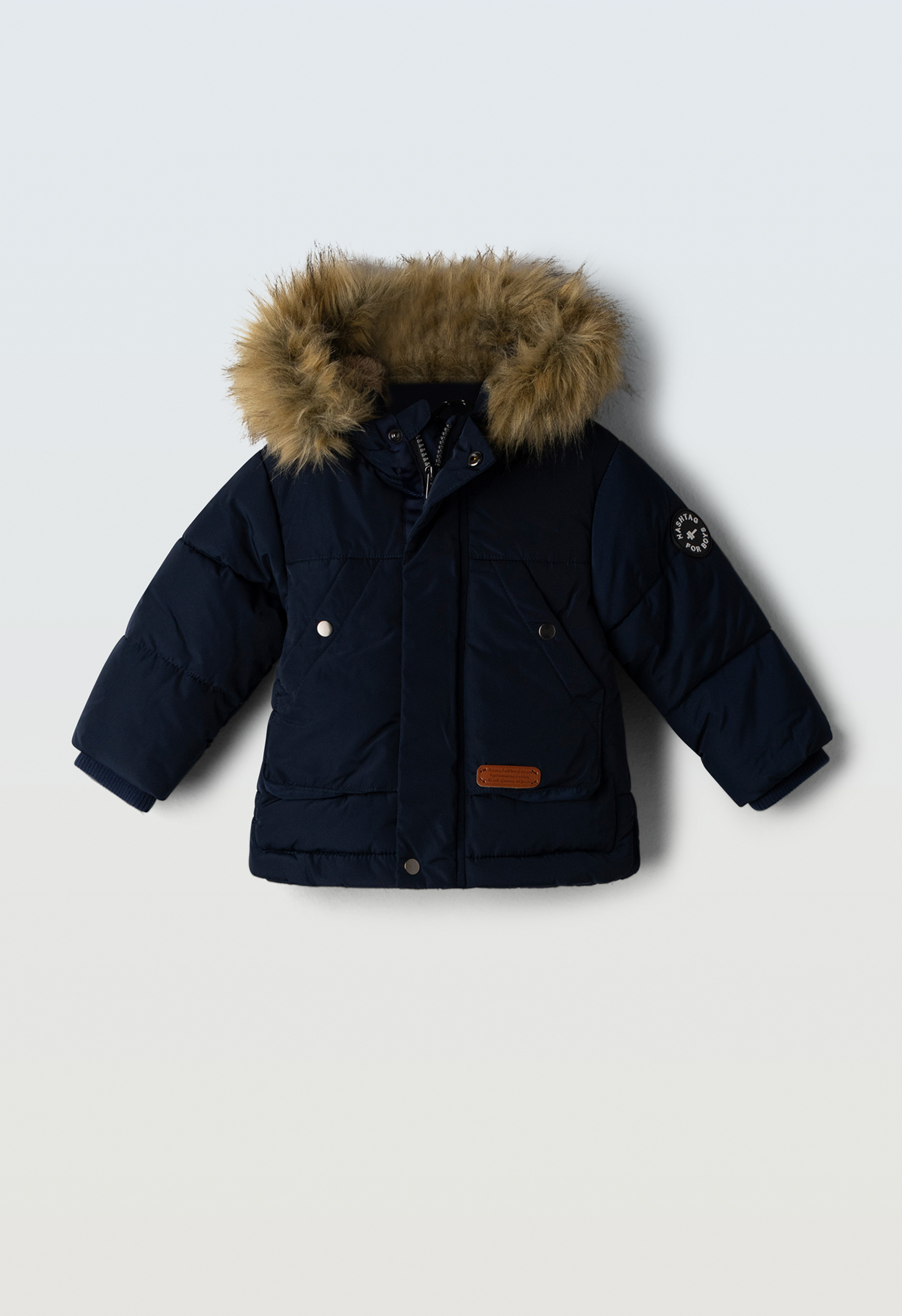 Σε βαθύ navy blue, με υπέροχη αφράτη συνθετική γούνα στην κουκούλα, αυτό το κομμάτι είναι η τέλεια ισορροπία ανάμεσα στη ζεστασιά, την άνεση και την ασφάλεια που θέλουμε για τα μωρά μας.