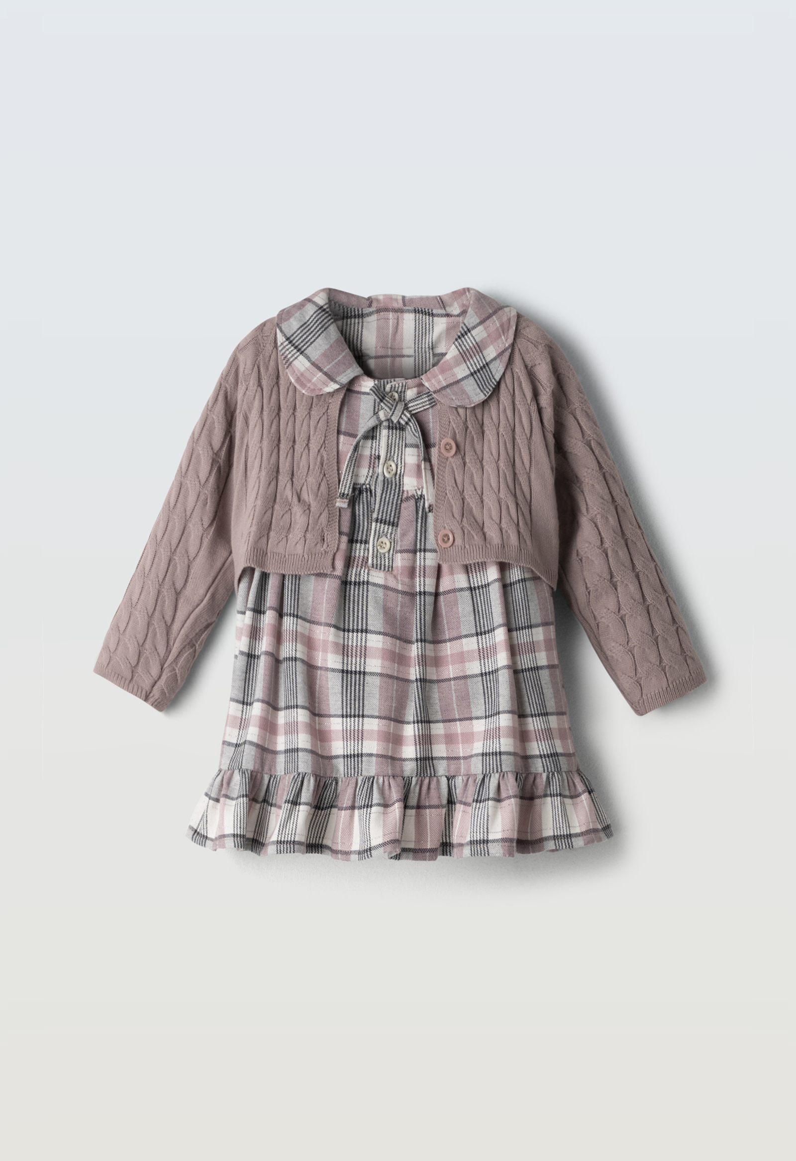 Βρεφικό Φόρεμα καρό με πλεκτή ζακετούλα MISS GIRL