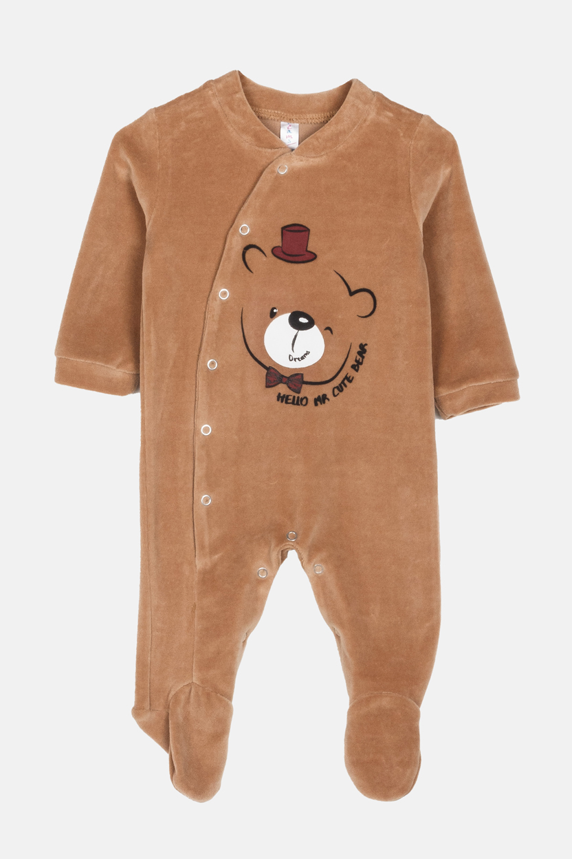 Βρεφικό φορμάκι βελουτέ Dreams “Mr. Cute Bear” – Διαθέσιμο σε ταμπά & μέντα