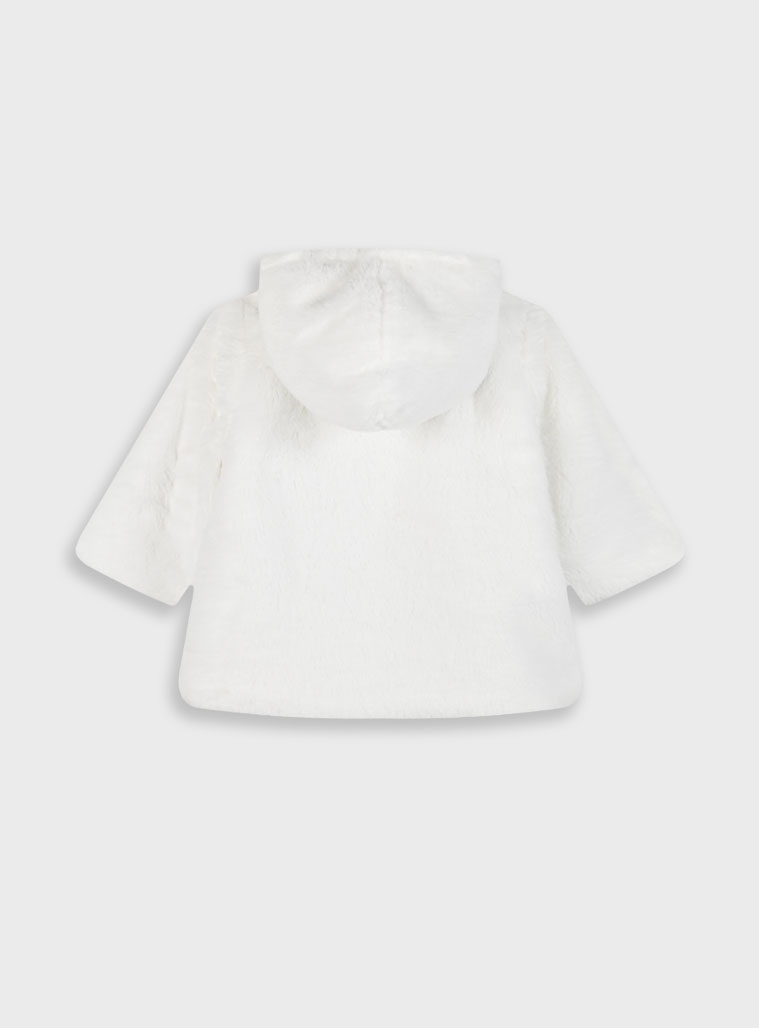 Βρεφικό παλτό γούνα Energiers Εκρού με Κουκούλα και Φιογκάκια