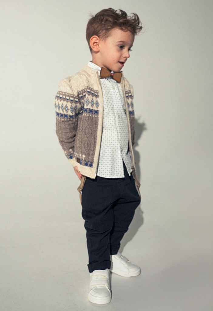 Η πλεκτή ζακέτα σε γήινες αποχρώσεις μπεζ–ταμπά με πινελιές μπλε και διαχρονικό nordic μοτίβο, είναι η απόλυτη winter classic επιλογή – ζεστή αλλά ανάλαφρη, με υφή που θες να την αγγίξεις. Το πουκαμισάκι από κάτω δίνει την καθαρή, περιποιημένη εικόνα χωρίς υπερβολές, ενώ το ξύλινο παπιγιόν… απλώς δένει το look με μια νότα old-school γοητείας.