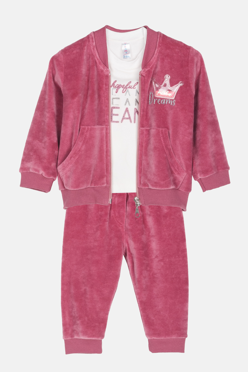 Βρεφικό σετ 3 τμχ βελουτέ Dreams “Girl Boss” – Ροζ