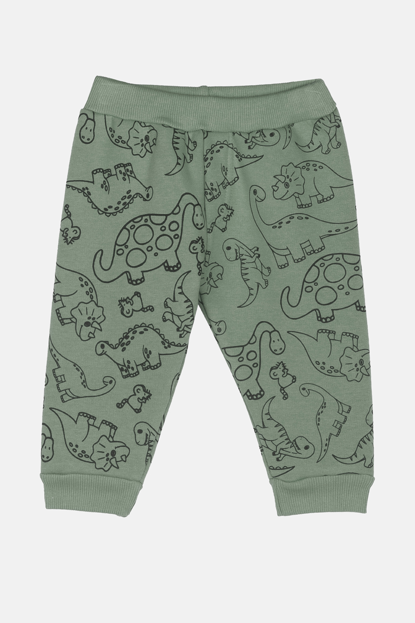 Το παντελόνι συνεχίζει το μοτίβο με all-over σχέδια δεινοσαύρων, δημιουργώντας ένα look γεμάτο φαντασία και περιπέτεια! 🌿